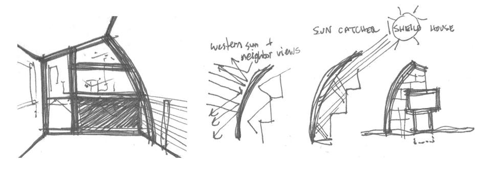 곡선의 계단실은 아침부터 이른 오후까지 자연광을 내부로 끌어들여 집안의 불을 끄는 역할을 하며, 밤에는 방문객들을 은은한 빛으로 환영하는 돛이 된다.