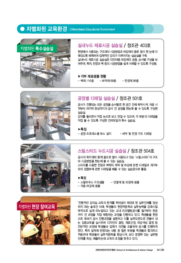 - 차별화된 특수실습실을 통한 생생한 현장교육이 가능