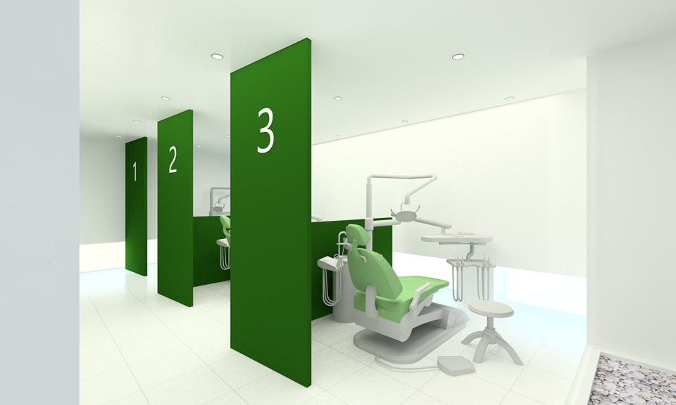 목재 루버를 이용하여 대기공간을 구획하였으며, 직선 루버만이 아닌 곡선 루버를더함으로 공간에 재미를 주었다. 깔끔하고 깨끗한 느낌의 치과의 이미지를 살리기 위해 주조색을 흰색으로 하였고, 사람들에게 긍정적이면서 친근하고, 편안한 공간을 제공하기 위해 보조색으로 베이지색의 우드를 사용하여 표현하였다.
