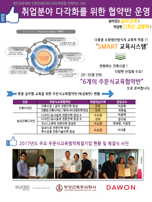 | 우리 건축인테리어디자인계열의 생생한 소식을 실시간으로 접해보세요~!! ▸ Facebook : https://www.facebook.com/archiyjc ▸ 계열홈페이지 : https://archi.yjc.ac.kr ▸ 네이버 카페(대학) : http://cafe.naver.com/ystory4u ▸ 네이버 카페(계열) : http://cafe.naver.com/archiyjc |