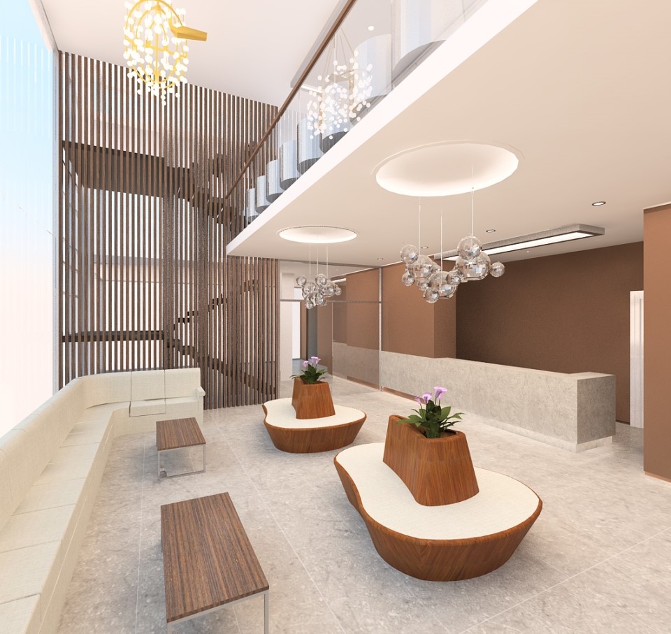 1층과 2층이 연결된 보이드 공간을 활용하여 공간을 더넓고 깊이감이 느껴질 수 있도록 계획하였고, 2층의 실들은 바닥재료를 각각 구분하여 서로 다른 느낌을 주도록 하였다. 회복실이 있는 3층은 무엇보다도 산모의 건강과 심신 안정을 위해 회복실 바닥마감재를 강마루로 처리하여 좀 더 친환경 적이고 안락한 공간으로 느낄 수 있도록 하여 좀 더 편안한 회복이 이루어지도록 하였다.