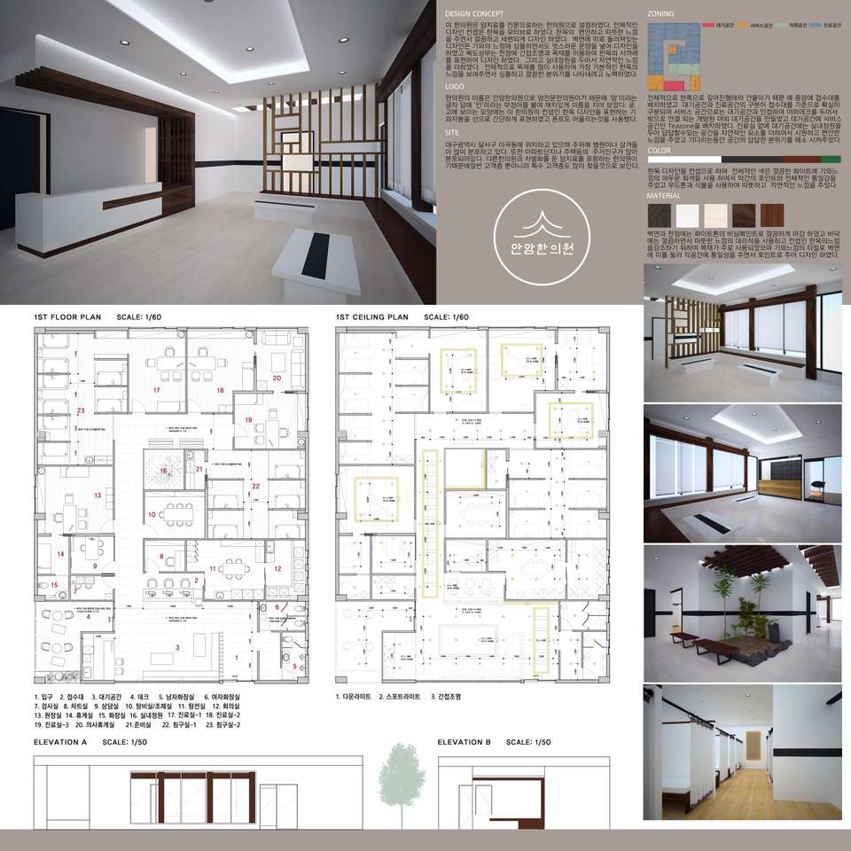 전체적인 디자인은 한옥을 모티브로하여따뜻하고 편안한 분위기를 나타내면서도 깔끔하고 세련된 느낌을 가지도록 하였다. 전통 한옥의 느낌을 되살리기 위해서 목재를 주로 사용하였고, 벽면은 기와를 표현하기 위하여 단순하면서도 우아한 문양으로 디자인하였고 천정에는 간접조명과 목재를 이용하여 한옥의 서까래를 표현하였다.
