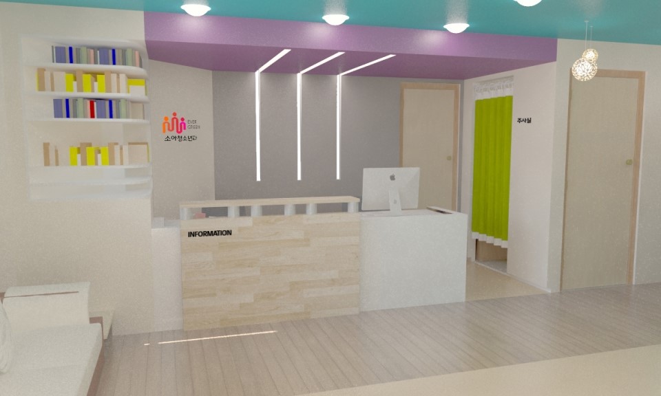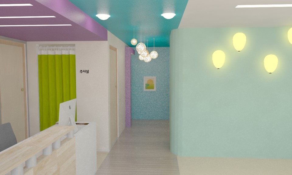 소아 청소년과를 디자인하면서 어린이와 청소년을 중점으로 봤을 때, 치료에 대한 두려움을 '색'을 통해 개선할 수 있다고 생각합니다. 색의 조화를 통해 시각적, 심리적 부담을 덜고 어린이, 청소년들이 즐겁고 편안한 치료를 받을 수 있도록 했습니다.