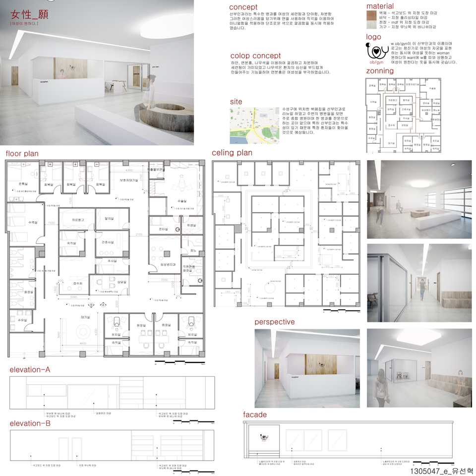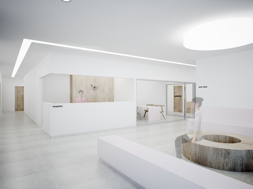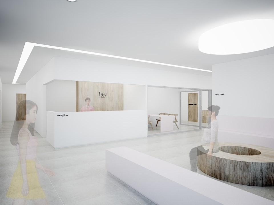 주 내방환자들이 여성인 만큼 공간 디자인에 있어 여성스럽고 세련된 이미지를 강조하고자 하였다. 전체적으로 화이트톤의 미니멀리즘적인 공간구성으로 깨끗하고 세련된 이미지를 표현할 수 있도록 하였고, 연한 핑크색과 목재의 부드러운 느낌으로 여성스러움이 묻어 나올 수 있도록 하였다.